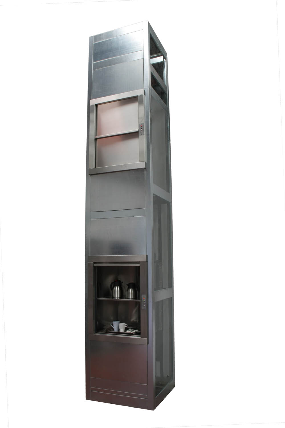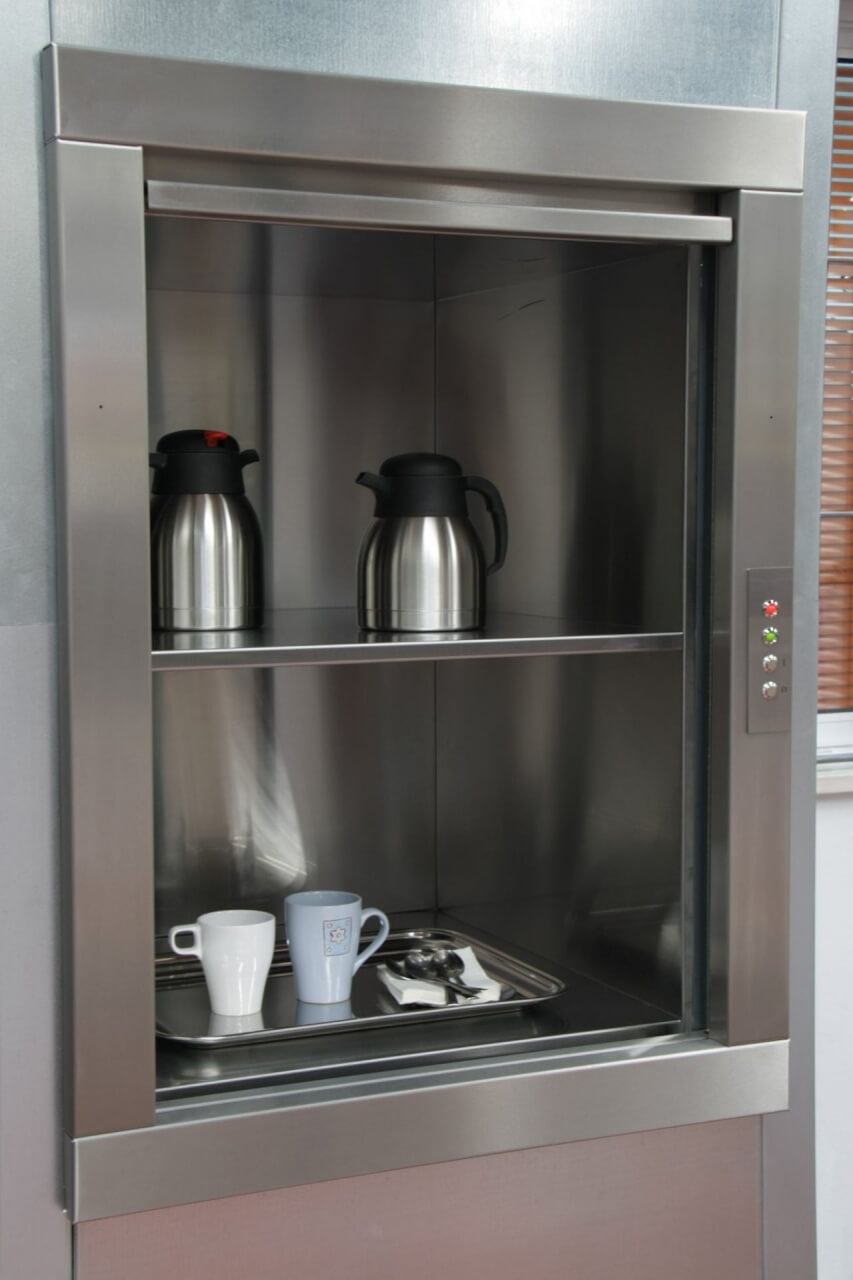 Nuestro montaplatos, también conocido como minicarga, es un tipo de montacargas de pequeño tamaño, diseñado específicamente para transportar alimentos, vajilla, bandejas u objetos ligeros entre distintos niveles de un edificio.